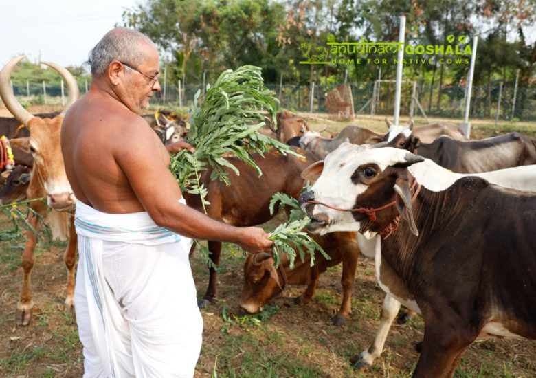 Anudinam Goshala is home to 75+ non-milk yielding and old native Indian cows that are otherwise sent to slaughter house